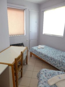 The student dormitories in MAICh campus can accommodate participants in double rooms (some of them with bunk bed) and single rooms with private facilities (toilet/shower). All the rooms are airconditioned, have a telephone and free internet access. The price for a double with single occupancy is the same as a single room. All the rooms have a shared balcony with the adjacent room (2 rooms one balcony)